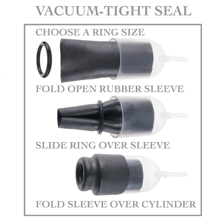 Choisissez dabord un anneau, glissez-le sur le manchon, repliez le manchon sur le cylindre gonflable et profitez dune étanchéité parfaite sur votre gland. À chaque pression sur la boule gonflable, le caoutchouc du manchon sagrippe à votre pénis et glisse dessus.